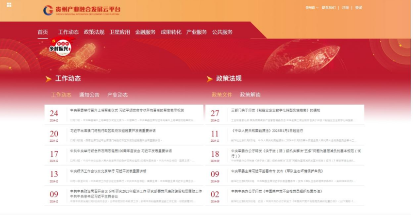 平台2022年3月正式上线运行。基于贵州省产业融合发展云平台基础,先后规划建成了多源卫星数据平台、区块链供应链融资服务平台、军民融合产业服务中心、军民技术公共服务中心、军民融合成果转化中心、智库服务管理系统(专利转化)基础平台等子平台和功能版块,共计25个系统336项模块。截止2025年3月平台互联网端累计注册个人用户315个、企业425家。平台浏览量21431次、高分卫星专区访问量8765次、遵义专区访问量3789次、用户登录次数1202次、区块链金融板块访问量3169次、活跃用户数(登录次数>2)181个。